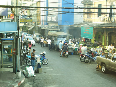 早朝にもかかわらずまとわりつくような熱気を放つバンコクの町をバスが走り抜ける。
